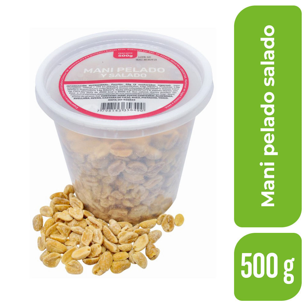 Mani Repelado Tostado Y Salado X 500g