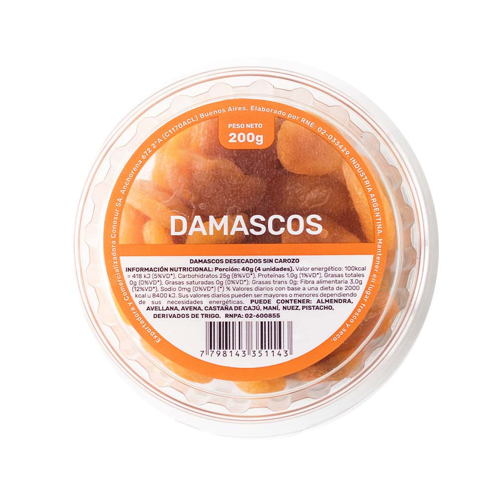 Damascos Turcos Pote 200 Gr