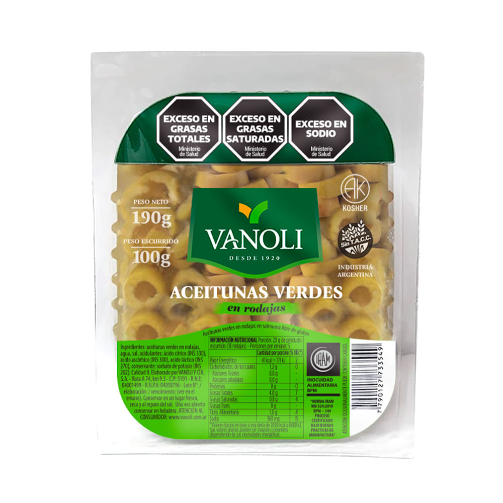 Aceituna Verde Rodaja X 100 Gr Vanoli