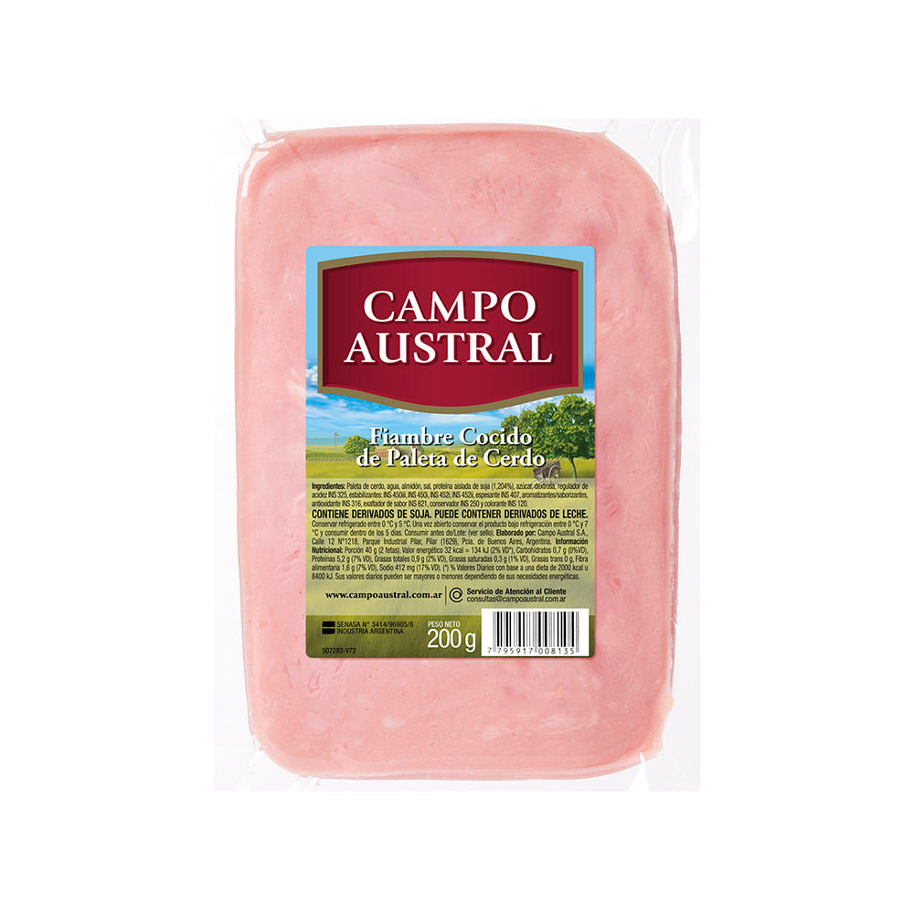 Jamon Cocido Campo Austral Millenium X 200 Gr