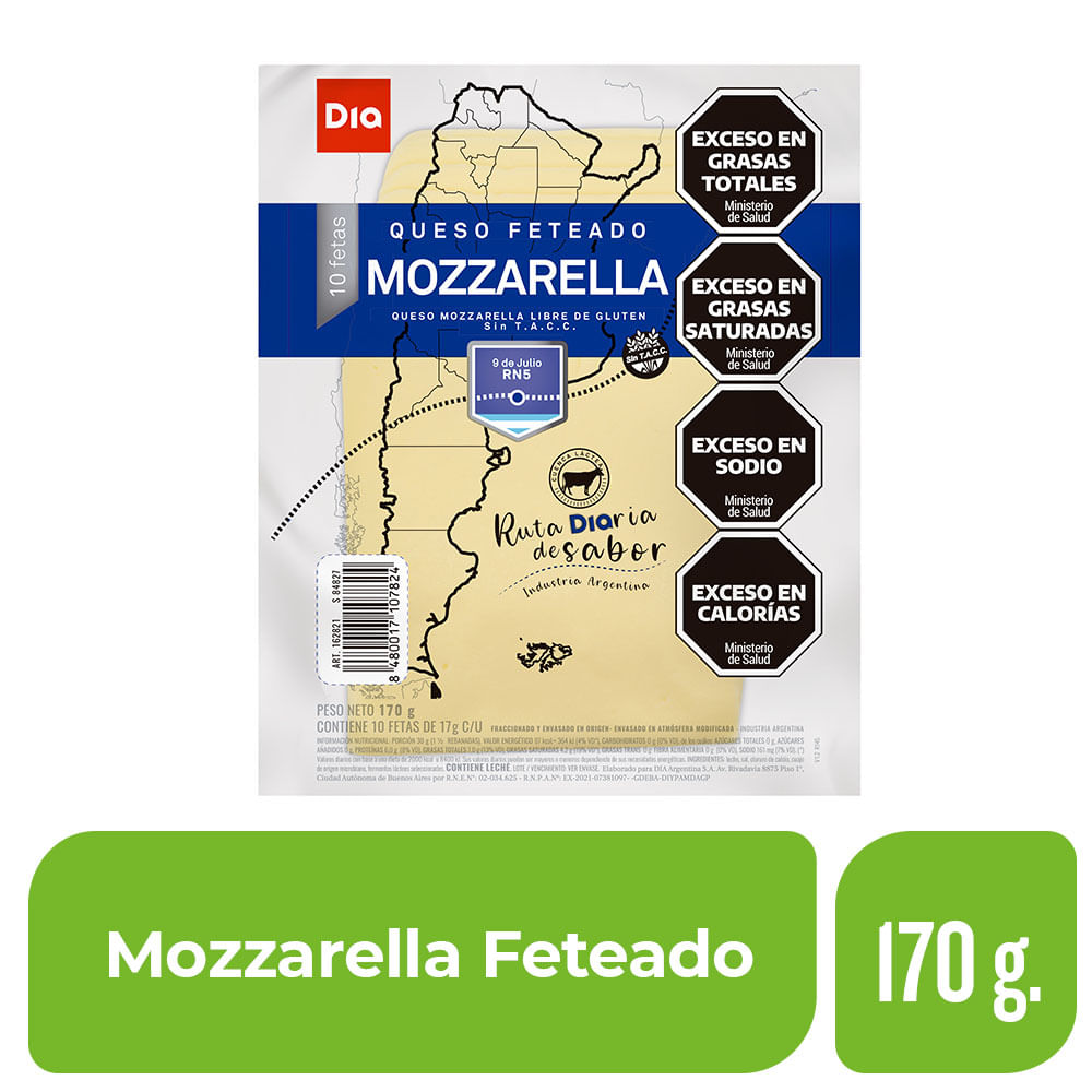 Queso Mozzarella Feteado Dia X 170 Gr.
