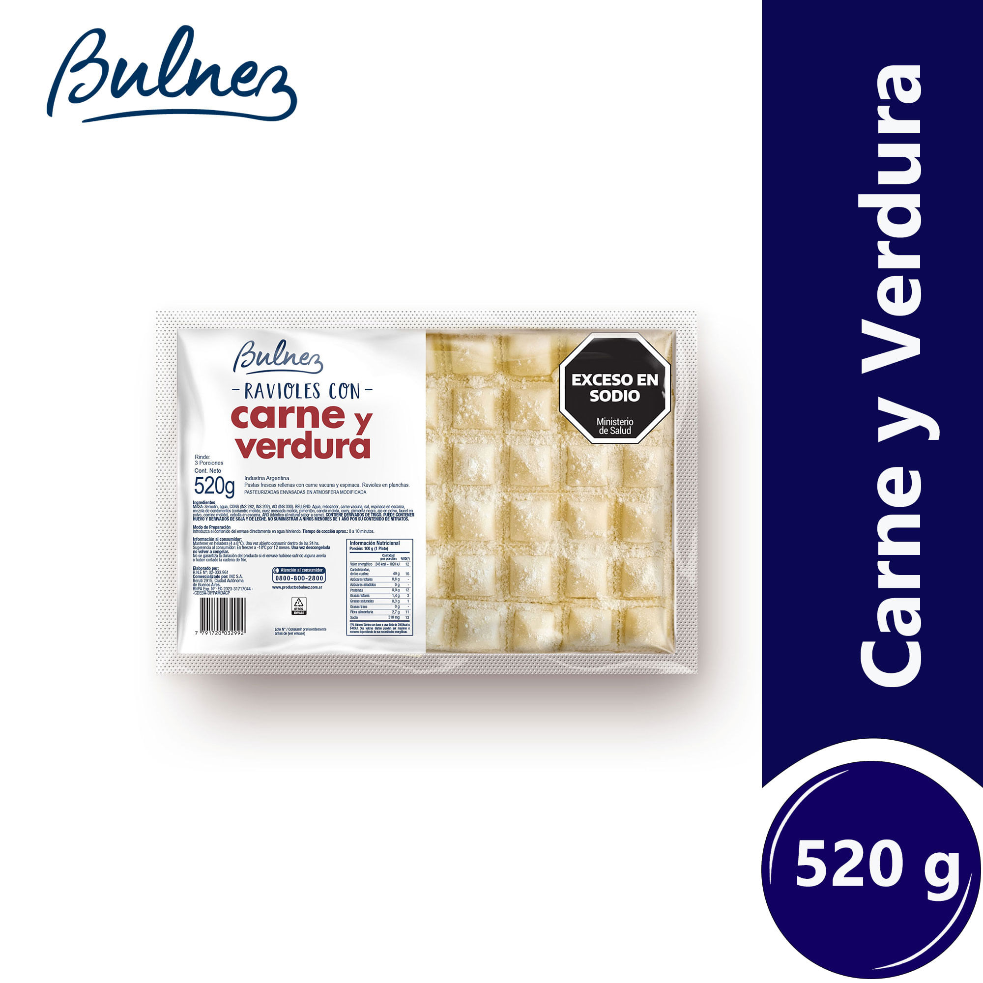 Ravioles Bulnez de carne y verdura en plancha 520 g.