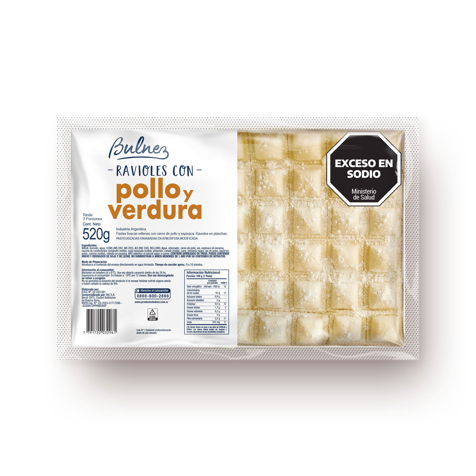 Ravioles Bulnez de pollo y verdura en plancha 520 g.