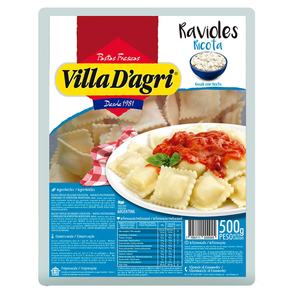 Ravioles De Ricota Villa D'Agri 500g