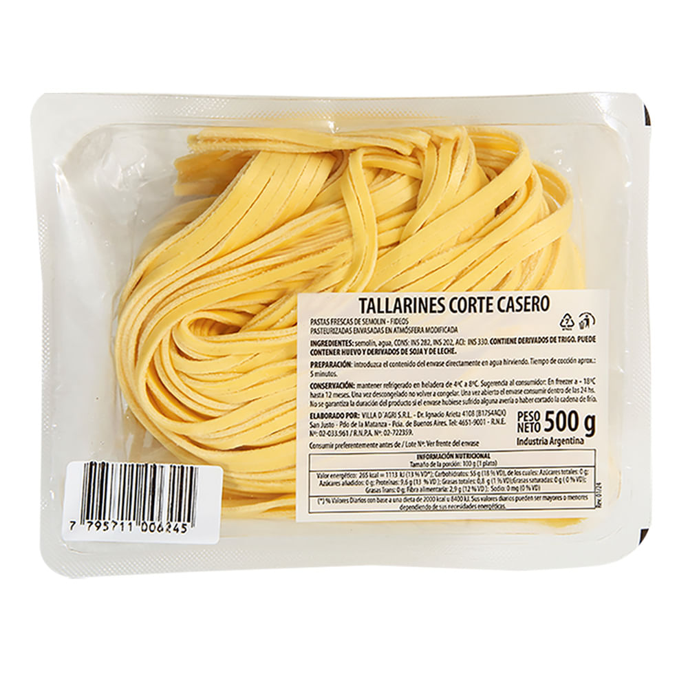 Tallarines de semolin casero 500 g.