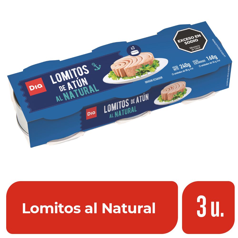 Lomitos de Atún Al Natural Dia x 3 Ud.
