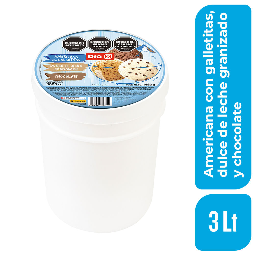 Helado DIA de Americana con Galletitas, Dulce de Leche Granizado y Chocolate 3 Lt.