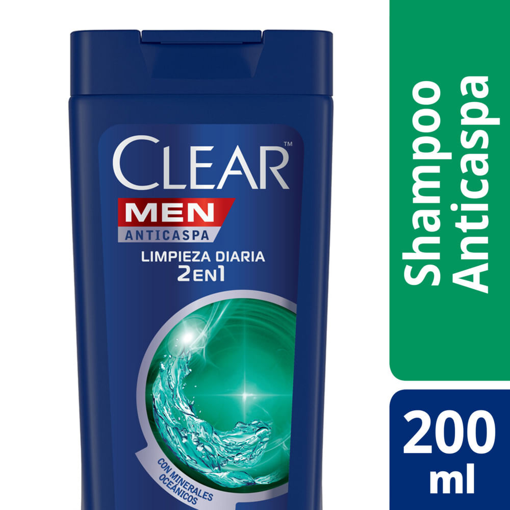 Shampoo 2 en 1 anticaspa Clear limpieza diaria 200 ml