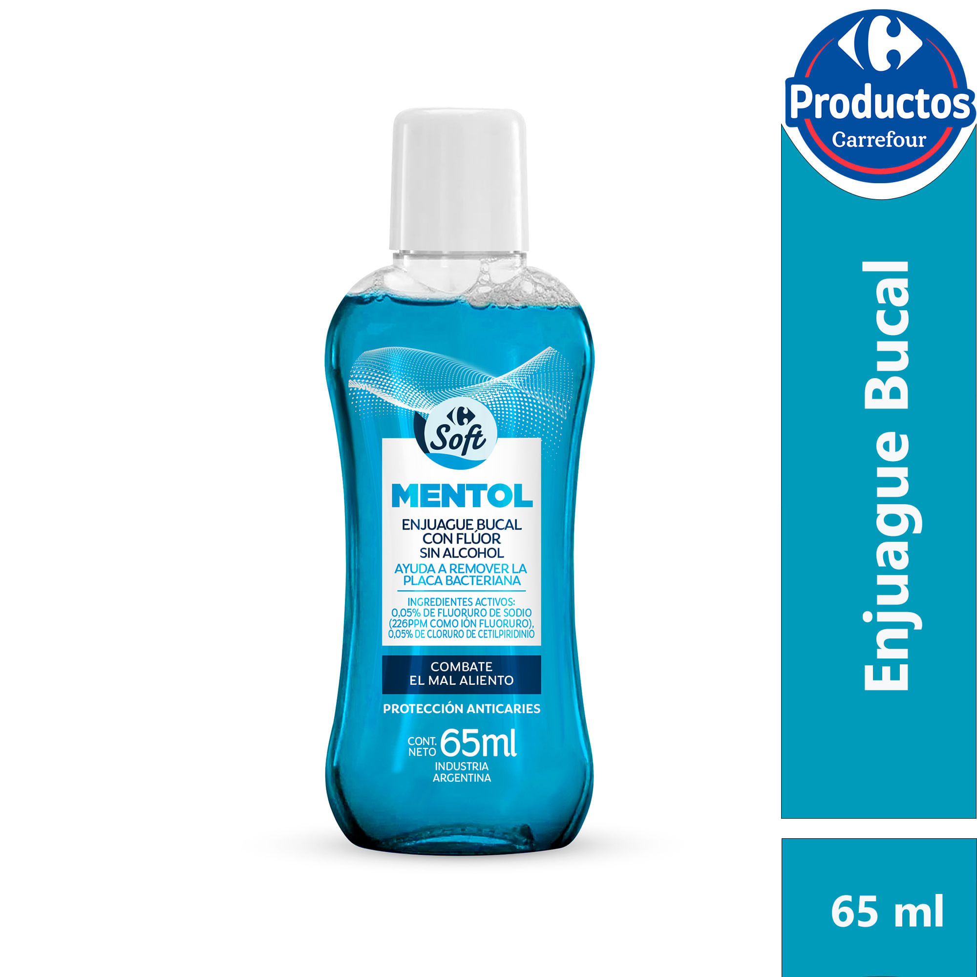 Enjuague bucal Carrefour Soft de mentol en botella 65 cc.