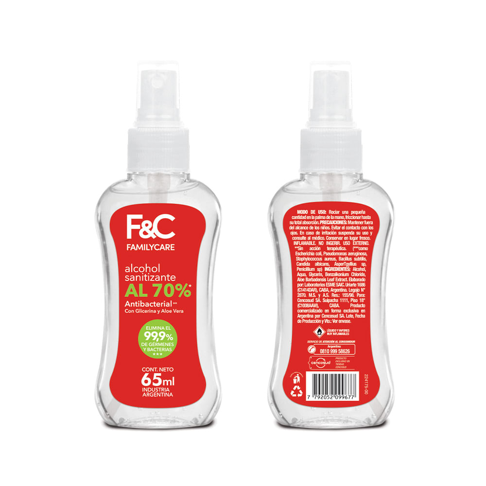 Alcohol Sanitizante Al 70x 65 Ml Family Care