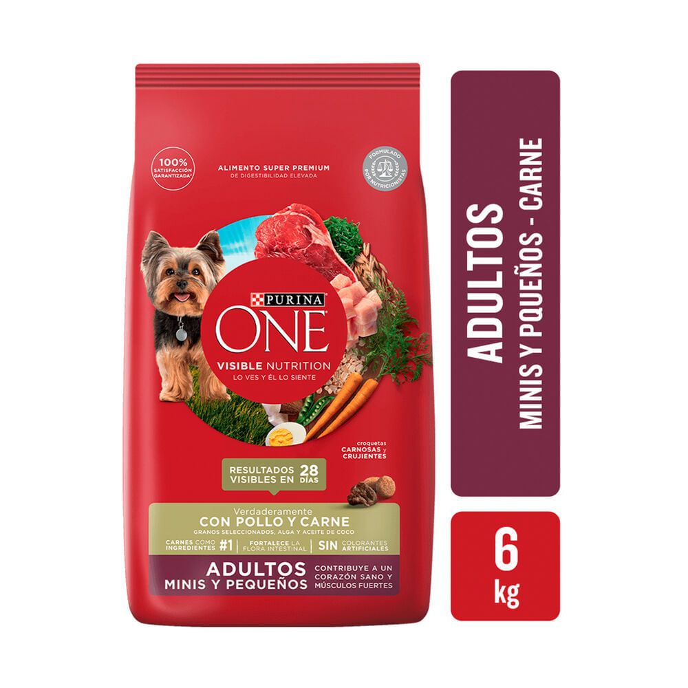 Alimento seco para perro Purina One 6 kg. adulto mini carne