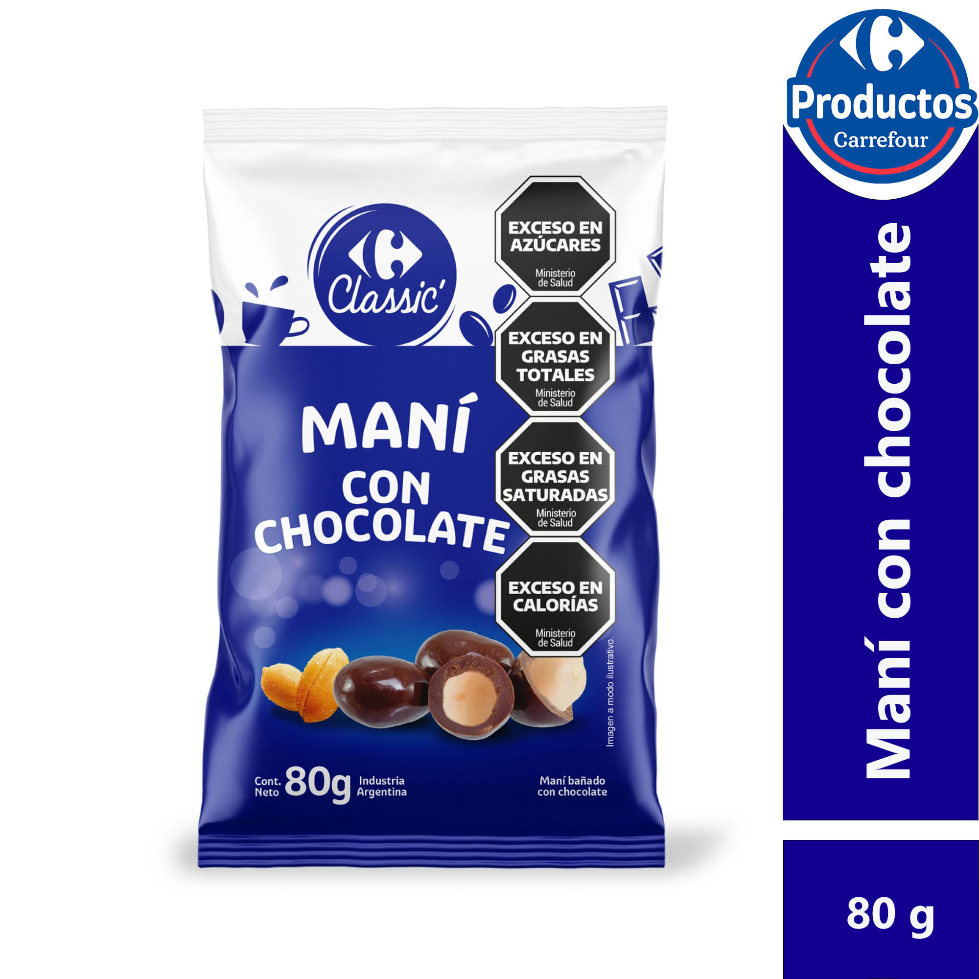 Maní con chocolate Carrefour classic 80 g.