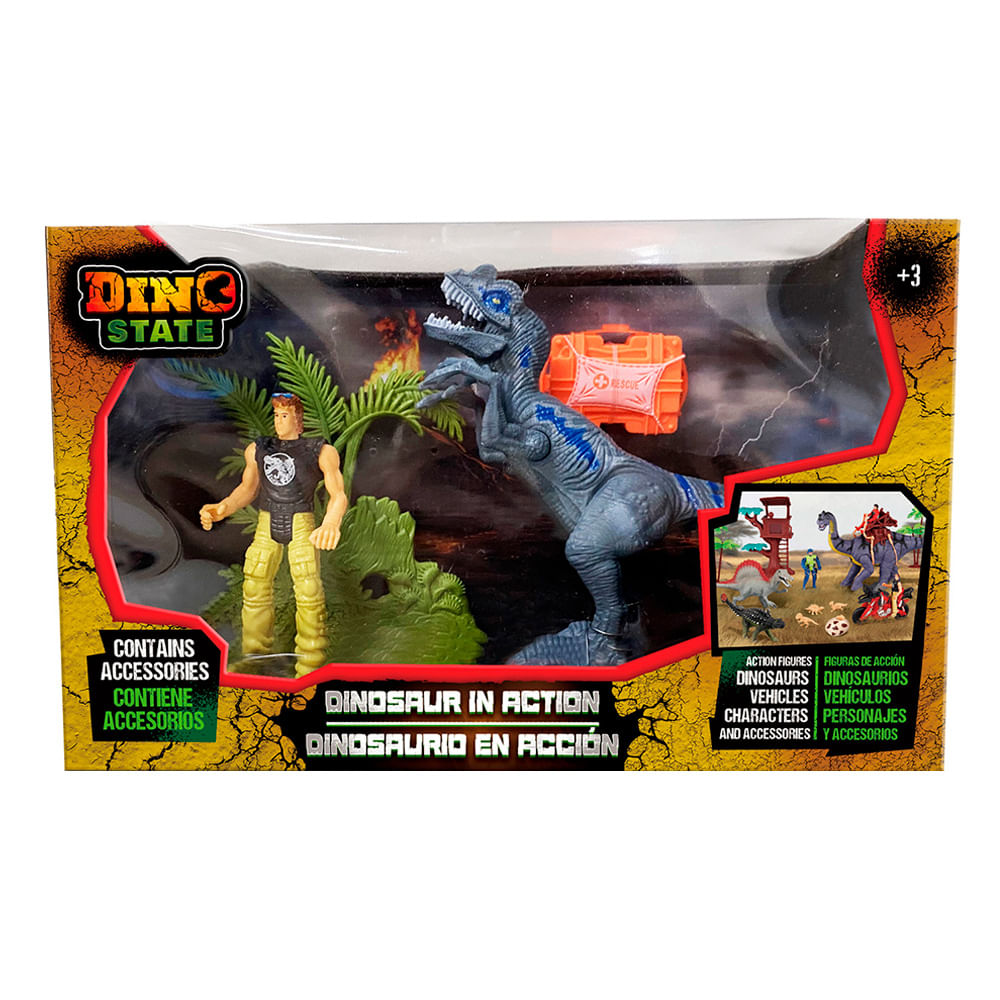 Set Dino State Dinosaurio En Acción 4 Piezas Surtido