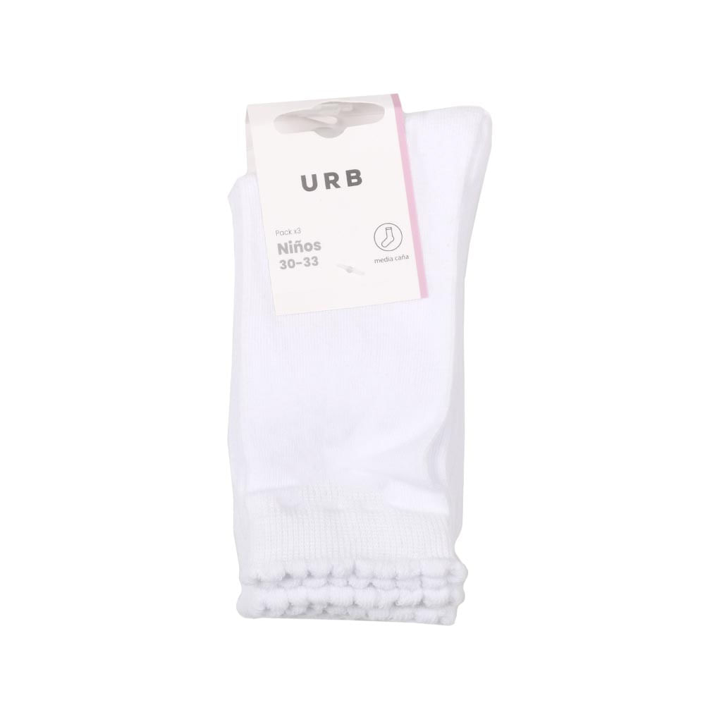 Calcetin Niña Media Caña Liso Blanco Pack X 3 Urb