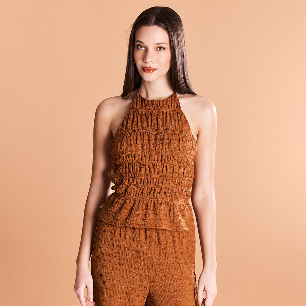 Top Mujer Marrón Con Frunces Opposite