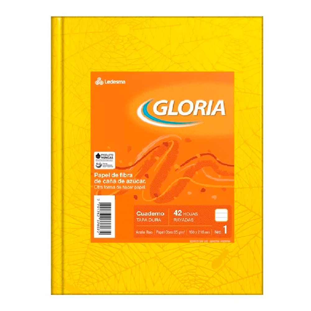 Cuaderno Gloria Araña Rayado Tapa Dura 16x21cm 42 Hojas Amarillo