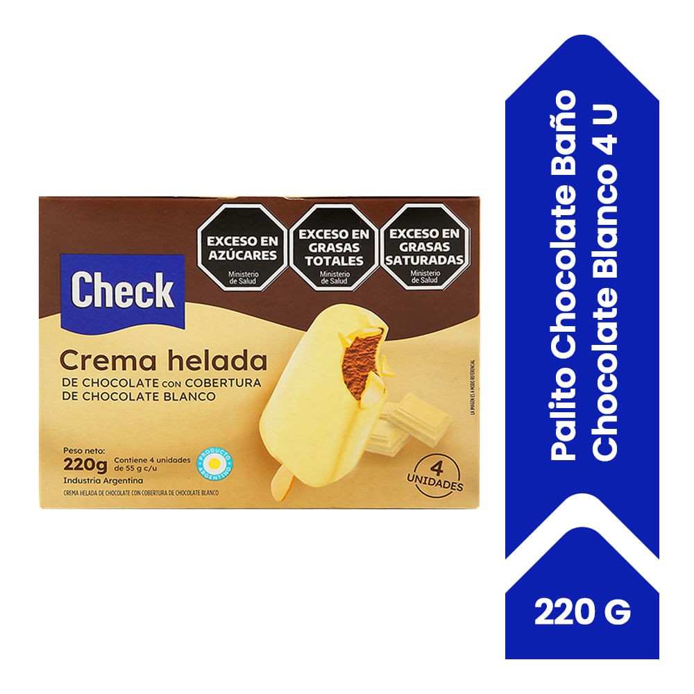 Helado Check Palito Crema Helada De Chocolate Bañado En Chocolate Blanco 220 G 4u