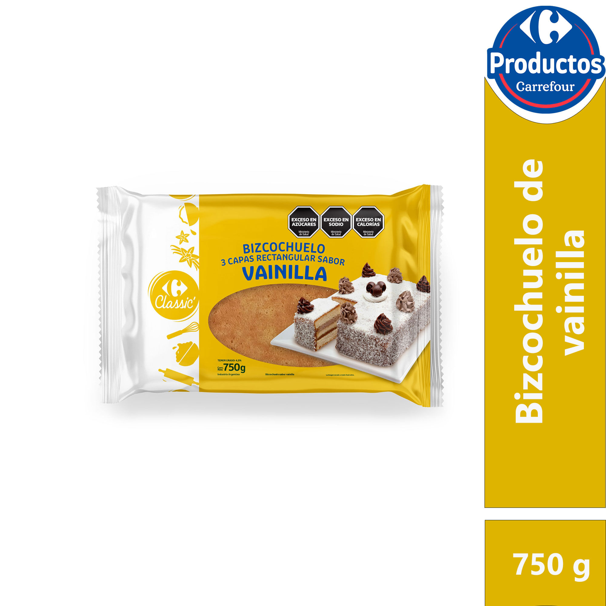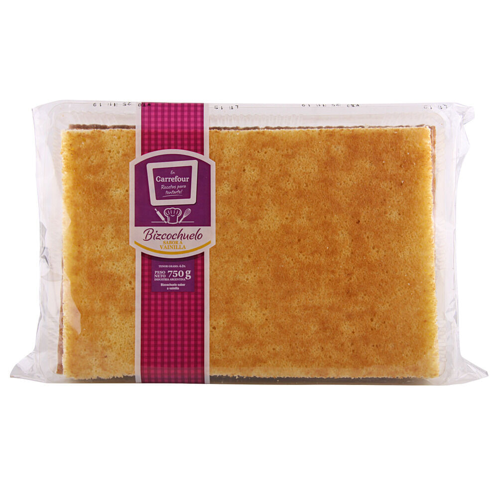 Bizcochuelo Carrefour classic rectangular 3 capas vainilla 750 g.