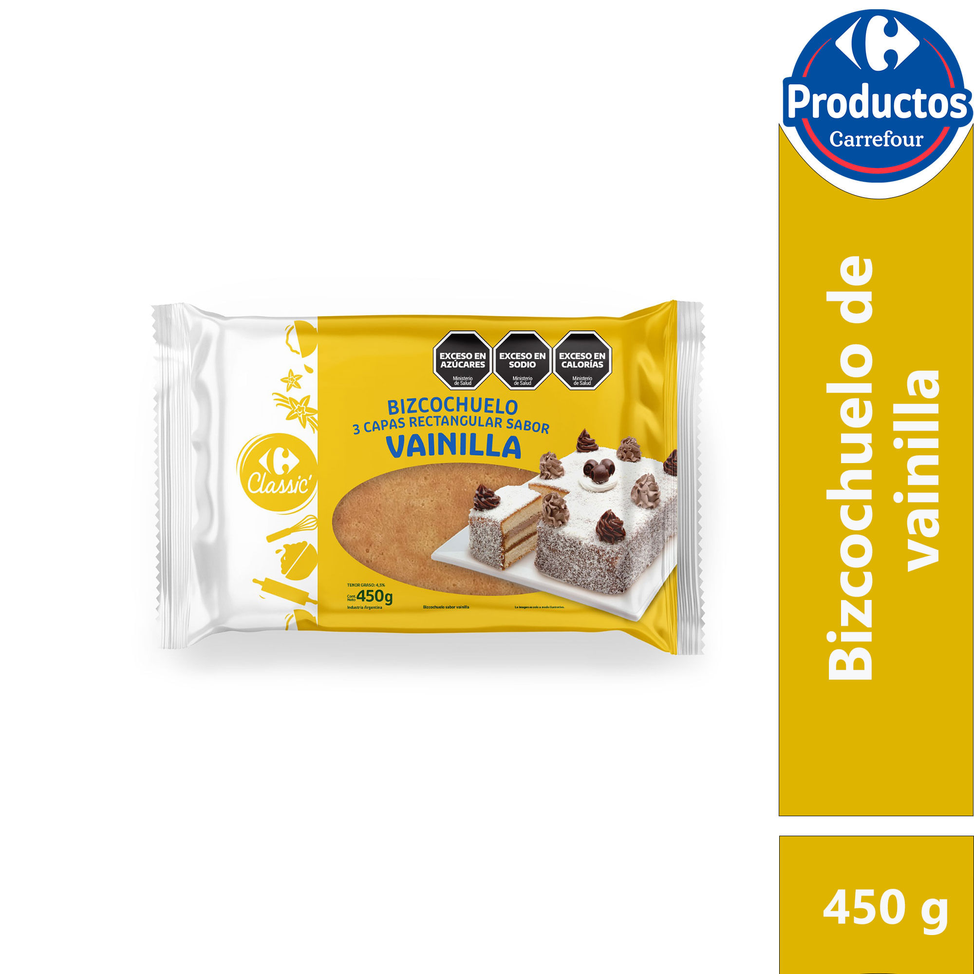 Bizcochuelo Carrefour classic rectangular 3 capas vainilla 450 g.