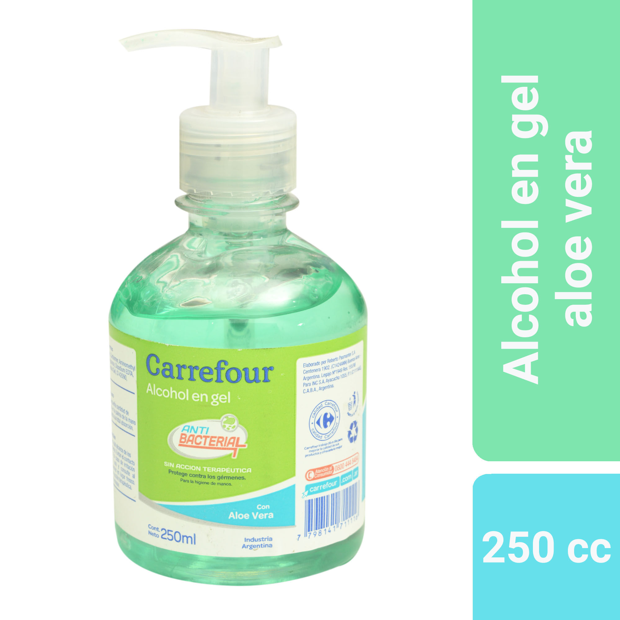 Alcohol en gel Carrefour con aloe vera 250 cc.