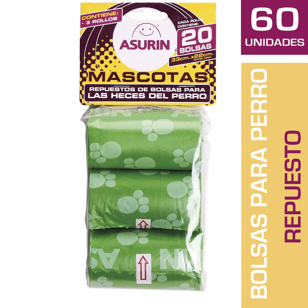 Bolsas Para Perro Asurin 3 Repuestos 60u
