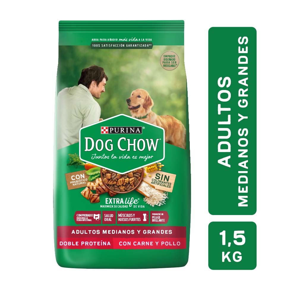 Alimento Dog Chow Para Perros Adultos, Medianos Y Grandes Sabor Carne Y Pollo 1.5 Kg