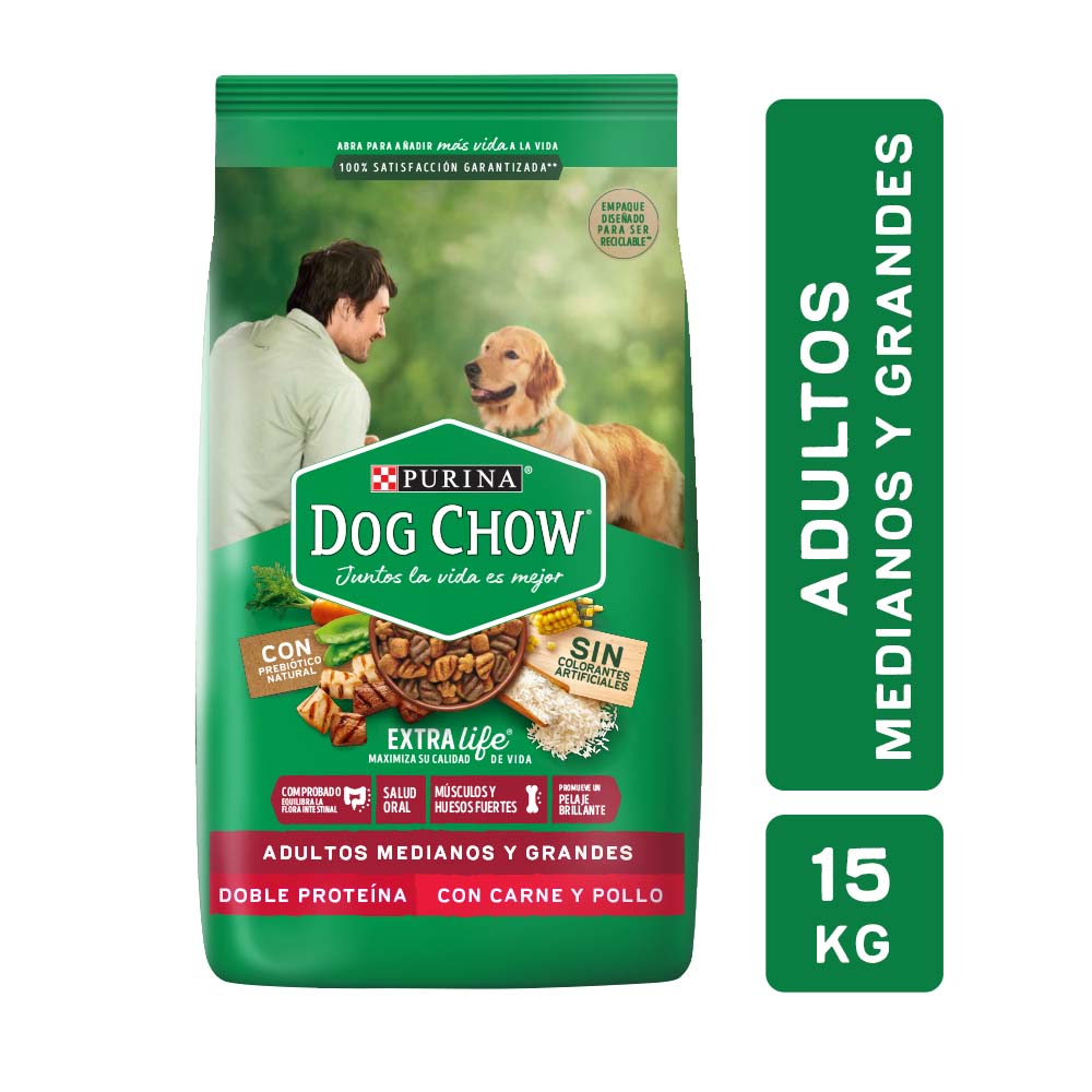 Alimento Dog Chow Para Perros Adultos, Medianos Y Grandes Sabor Carne Y Pollo 15 Kg